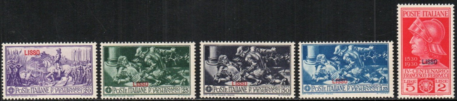 At Mesa Stamps, we provide collectible Italy-Aegean Islands-Lisso stamps for stamp collectors. Stamps have always been a way for different nations to depict their culture. What or who a country decides to immortalize on a stamp explains the importance of that piece of history. Many of this one of a kind Italy-Aegean Islands-Lisso stamps depict an array of colors, designs, and themes. Some of our best Italy-Aegean Islands-Lisso stamps include "Ferrucci Issue".