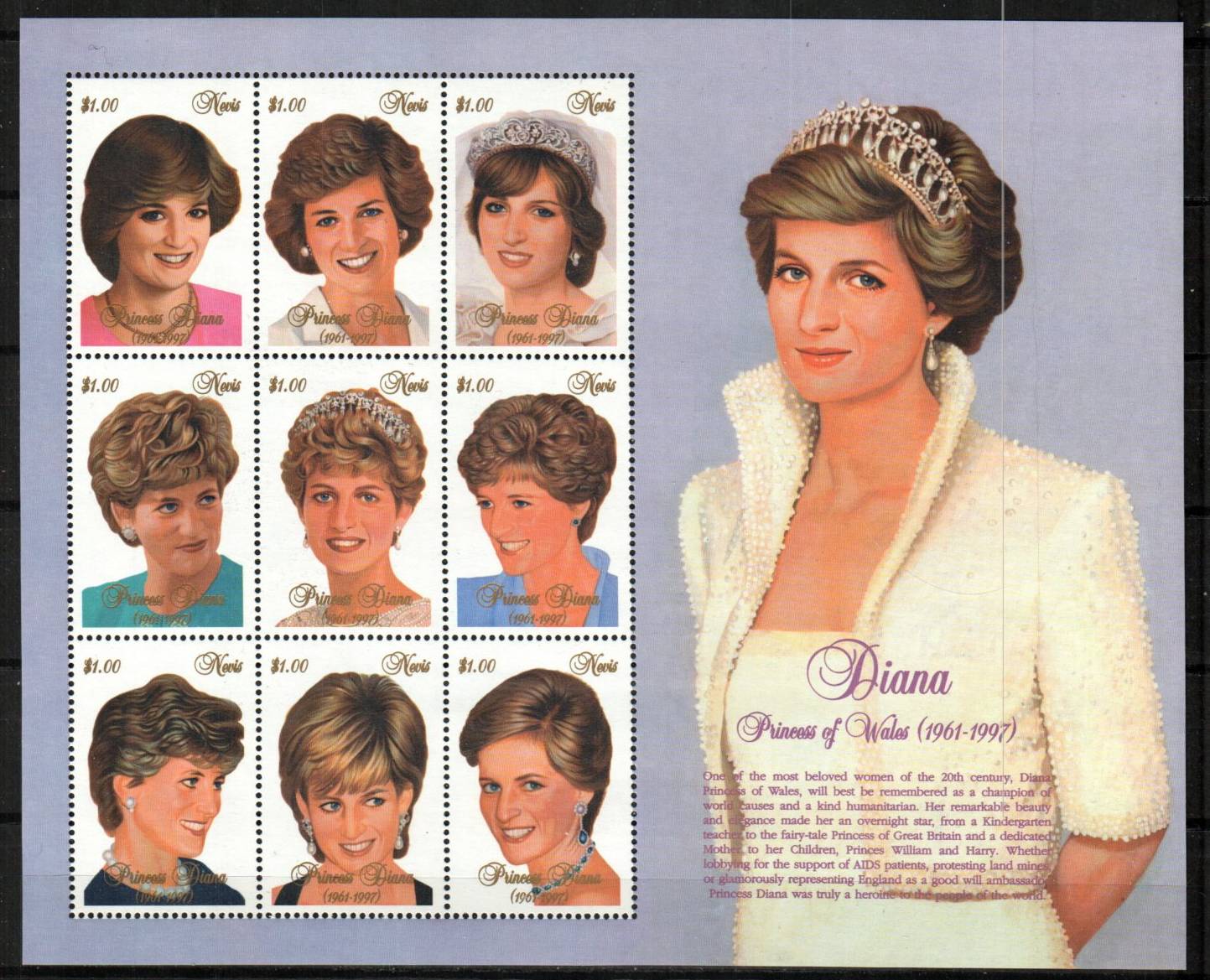 Princess Diana sheet of 9 different portraits | NH | $5.50 | 3 |