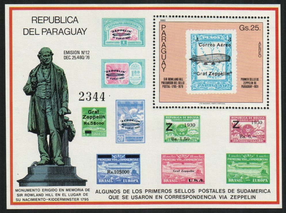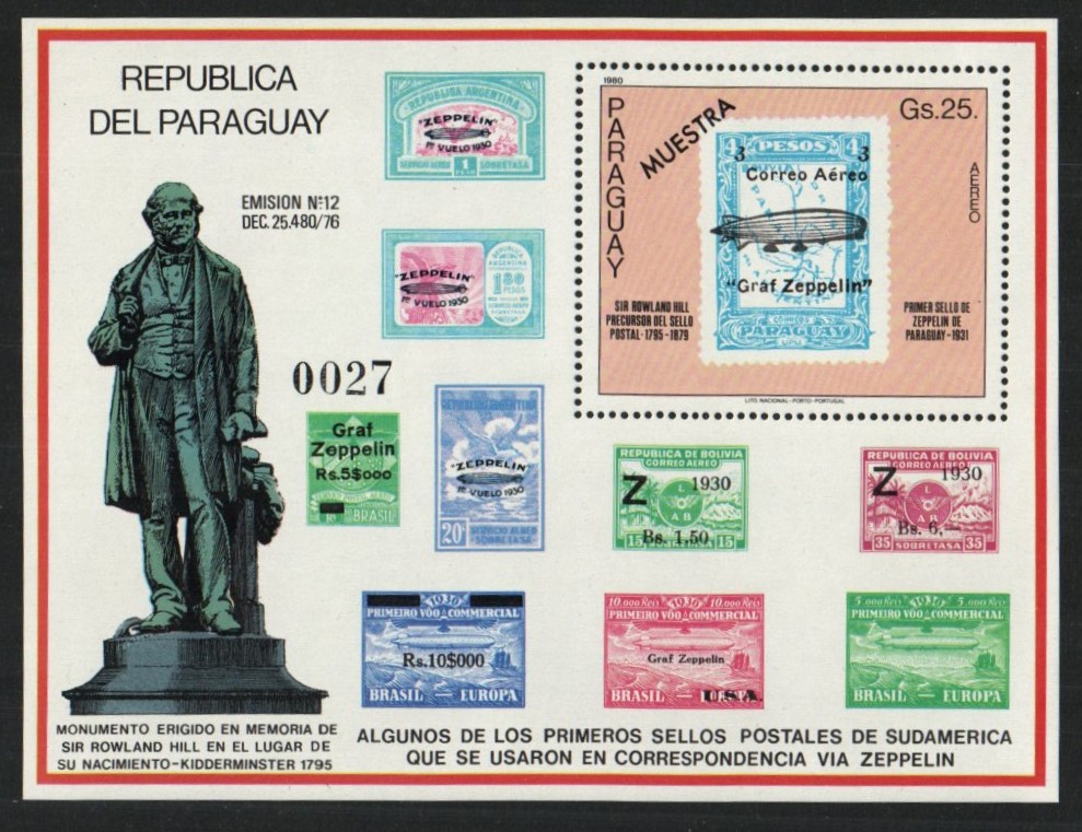 Paraguayan stamp centenary souvenir sheet | NH | $31.00 | 1 |