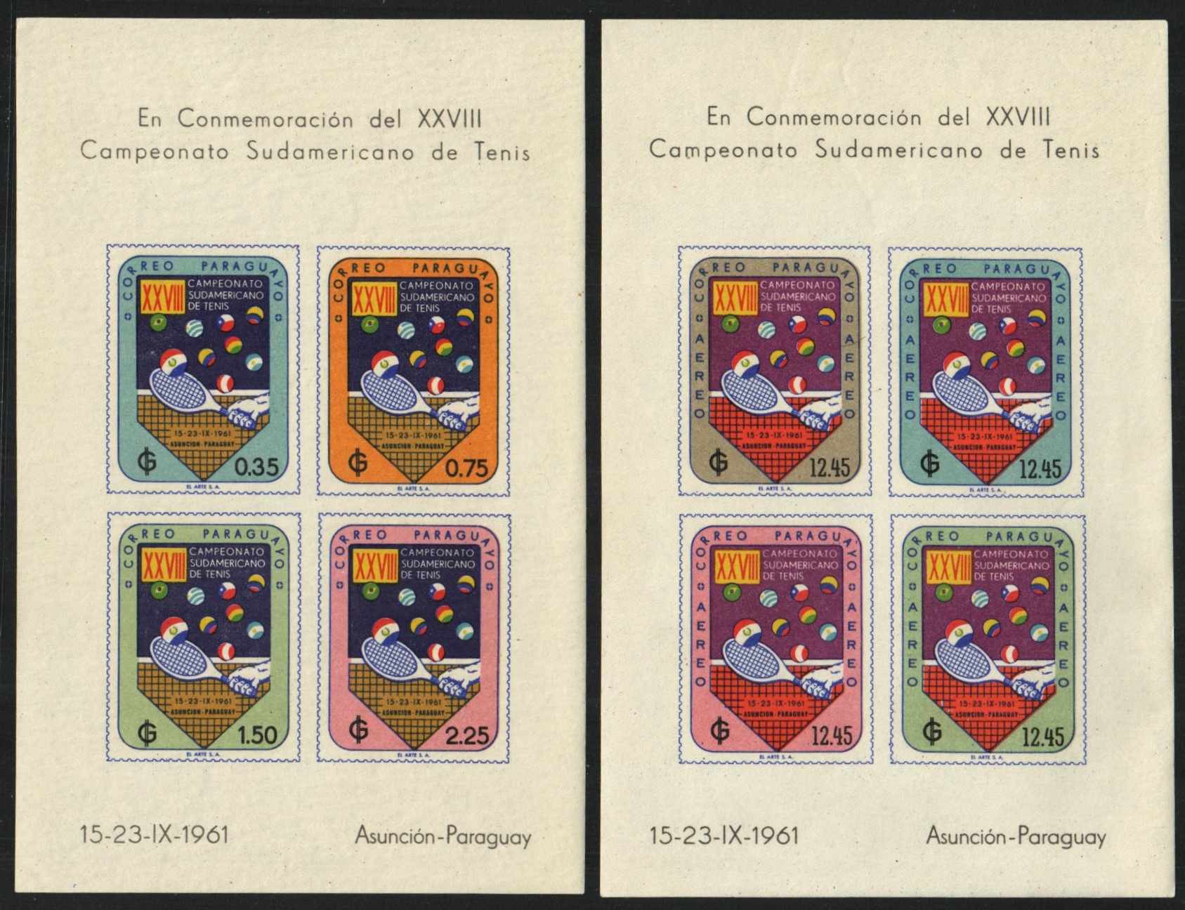 South American Tennis Championships set of 2 souvenir sheets imperf blocks of 4 with simulated perforations | NH | $30.00 | 3 |