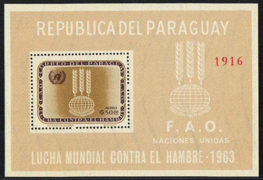 Freedom from hunger souvenir sheet, in changed color | NH | $18.50 | 2 |