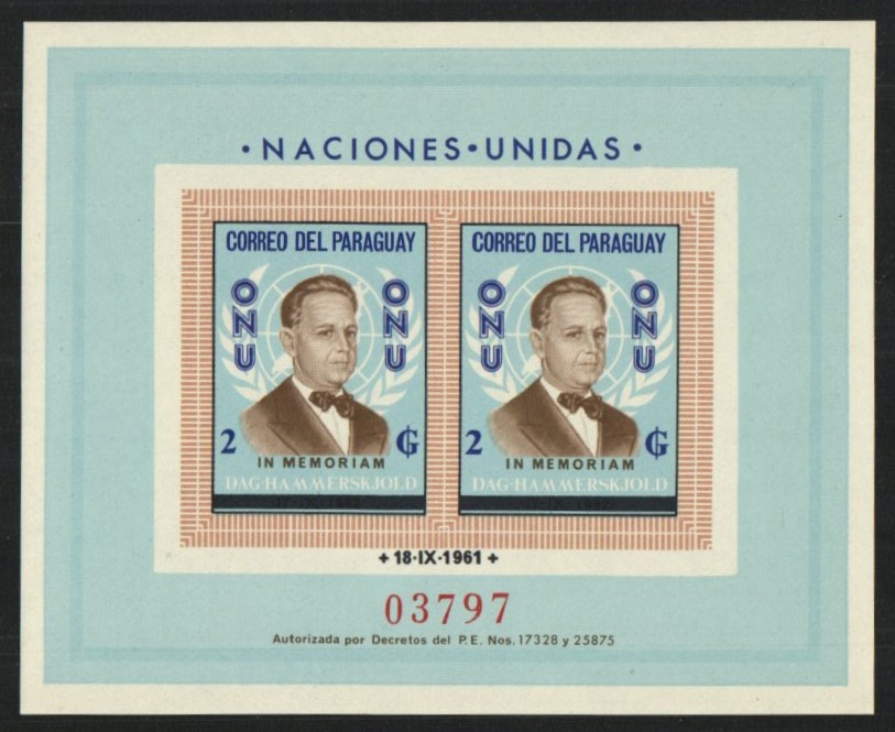 Dag Hammarskjold memorial issue souvenir sheet | NH | $20.75 | 3 |