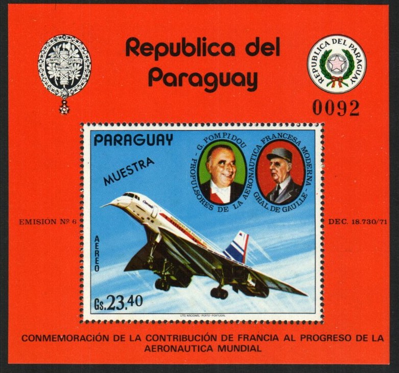 Georges Pompidou, de Gaulle, Corcorde souvenir sheet | LH | $34.00 | 1 |