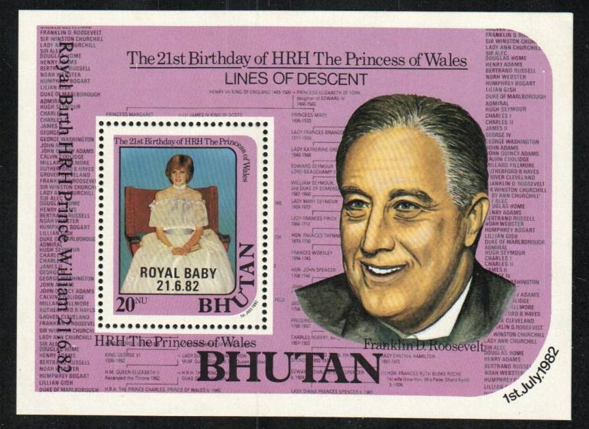 Royal Baby overprint on Diana sheet souvenir sheet, F. D. Roosevelt in margin | NH | $5.80 | 1 |