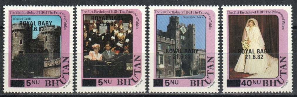 Bhutan | 476-479 | Diana overprint Royal Baby-surcharged | NH | $15.35 | 1 |